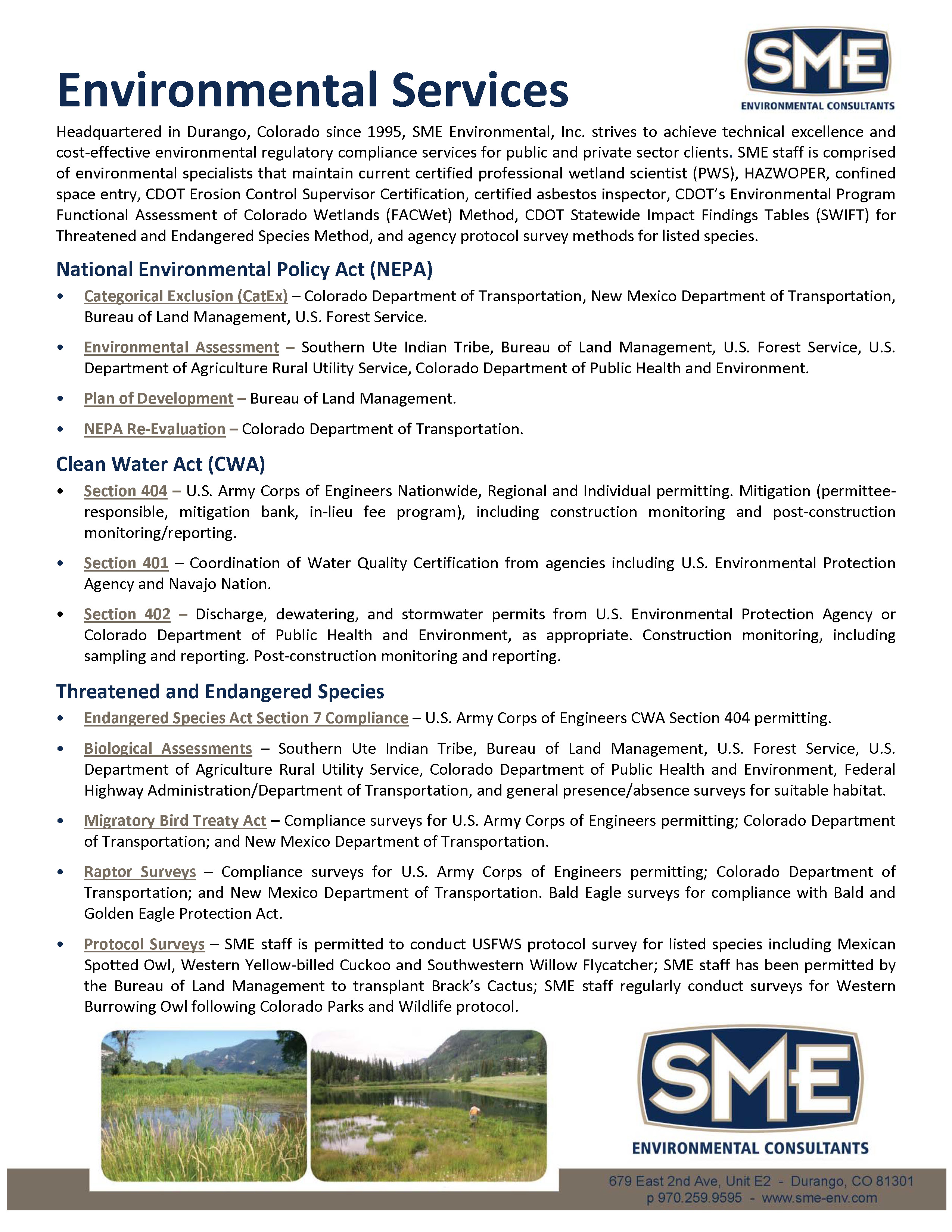 Development and construction throughout the Four Corners have created a need for restoration and mitigation. Numerous private sector clients have benefited from SME’s professional approach to restoration. SME has completed restoration projects in aquatic and riparian habitats on private, state, and tribal lands. SME’s staff includes professionals in the restoration field. Our team has completed restoration projects to achieve re-vegetation, erosion control, enhanced wetland function, and other goals customized for project need.